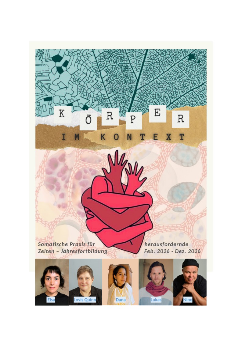 Körper im Kontext. Somatische Praxis für herausfordernde Zeiten. Februar bis Dezember 2026 Nächster Infocall am 1. Oktober 2025 um 17Uhr. Mehr Infos hier Barrierefreier Raum, 20 Plätze. In einer Welt voller Wandel braucht es neue verkörperte Antworten! Wie können wir … mehr lesen